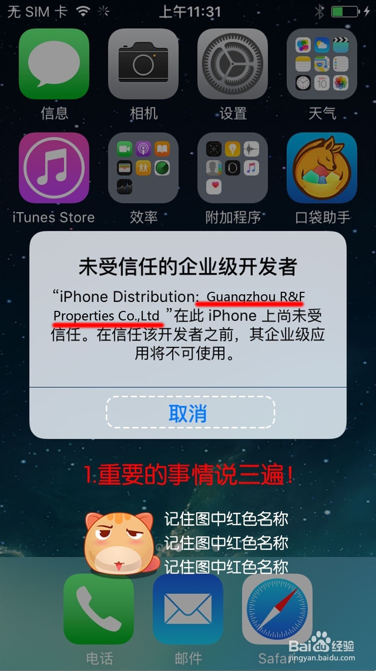 重要:升级了苹果最新系统(IOS9)的用户,点开App的时候,如果弹出如下图所示对话框,请做如下设置。