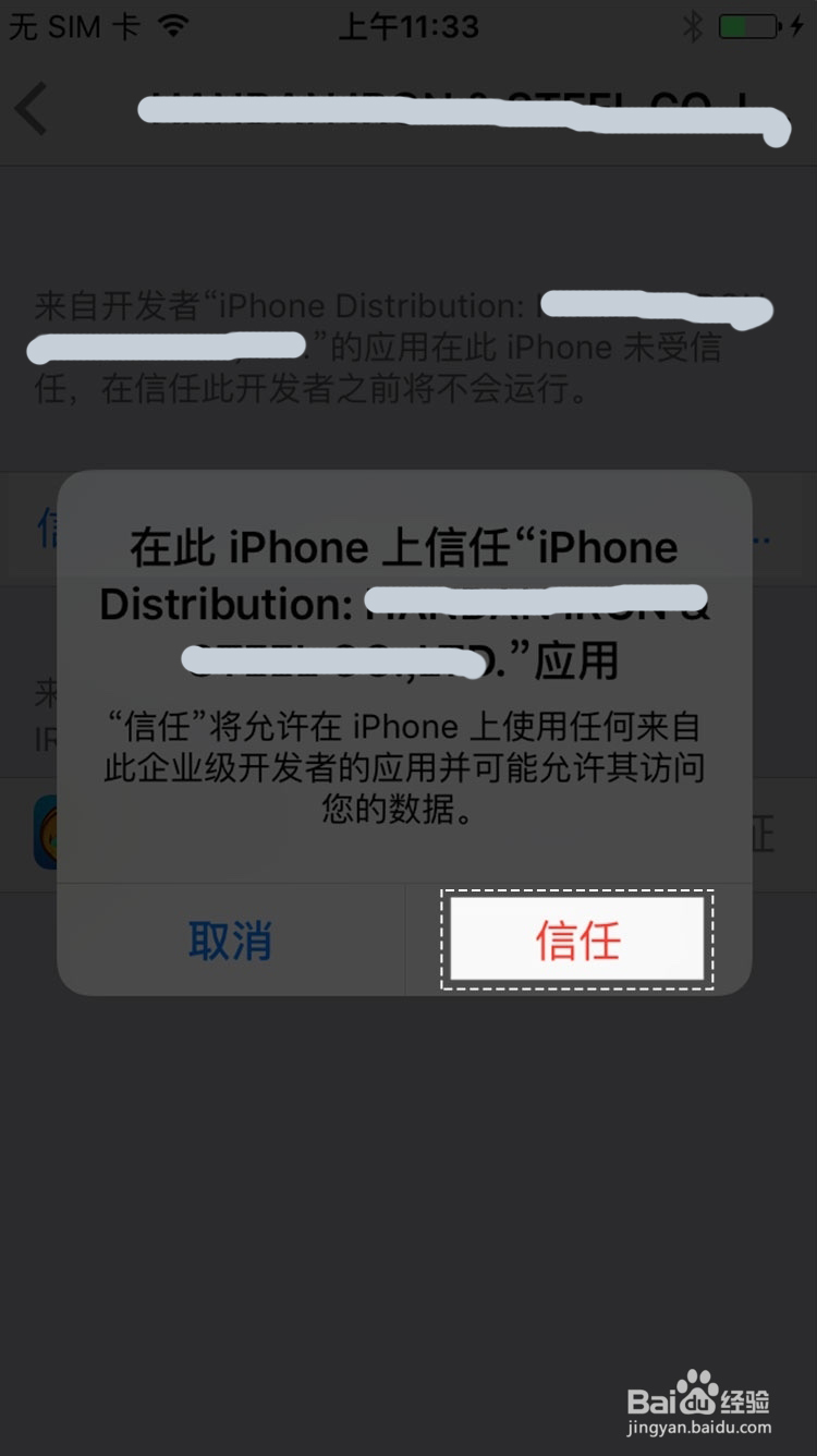 第六步:点击弹出的弹框中的“信任“。大功告成,可以愉快的进入App了!!!